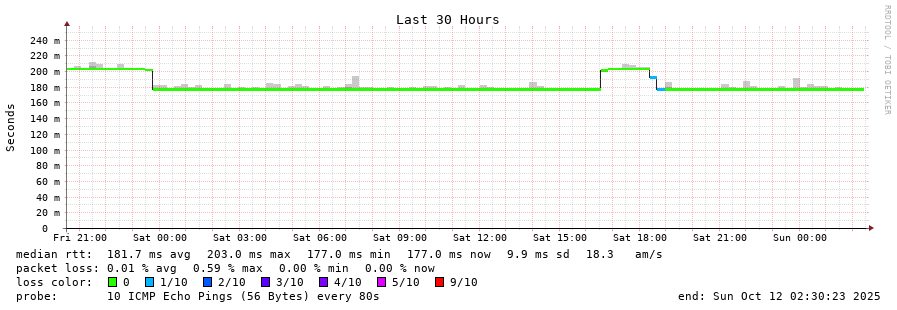traceroute to 203.36.190.1 (203.36.190.1), 30 hops max, 60 byte packets - Generated at 2025-10-12 00:45:01