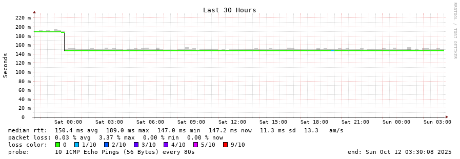 9 > c250sys000003.c-able.ne.jp (122.250.0.3) [AS18077] 147.659ms 147.490ms 147.510ms