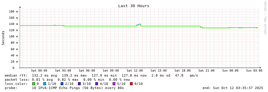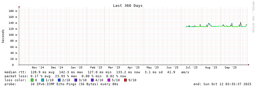 traceroute to 2a05:9f04:16:10::65 (2a05:9f04:16:10::65), 30 hops max, 80 byte packets - Generated at 2025-10-12 03:30:01