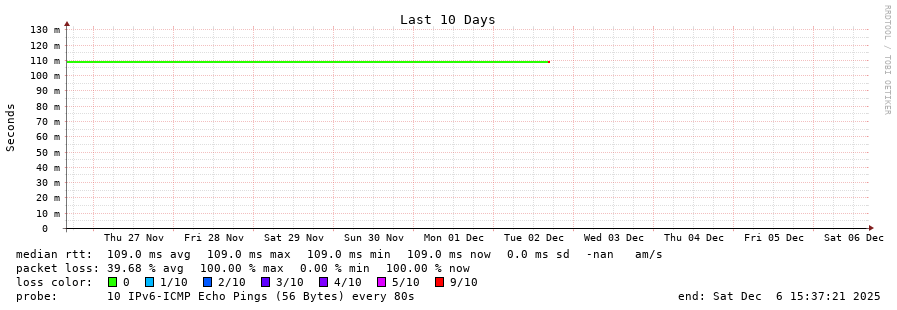 11 > fdff:f000:8::3 (fdff:f000:8::3) [*] 109.689ms 109.633ms 109.709ms