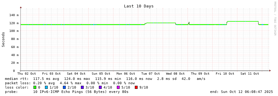 11 > cogent.as174.cz.eu (2001:41d0::2873) [AS16276] 117.803ms 118.202ms 117.469ms