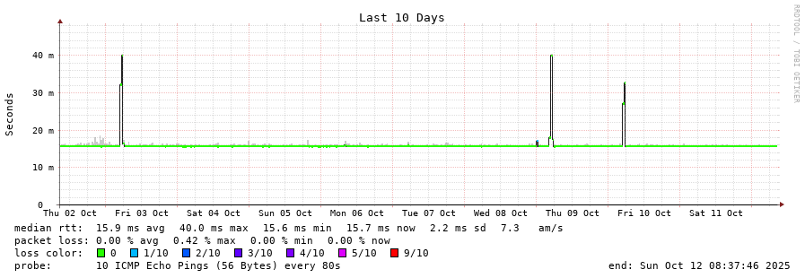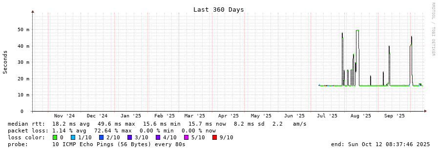 traceroute to 142.44.208.99 (142.44.208.99), 30 hops max, 60 byte packets - Generated at 2025-10-12 06:00:02 3 > 4 > 5 > 6 > atl-atl14-pb1-nc5.ga.us (142.44.208.99) [AS16276] 15.666ms 15.863ms 15.699ms