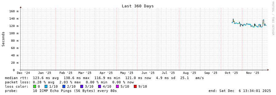 5 > 213.144.185.45 (213.144.185.45) [AS6762] 99.800ms 99.858ms 99.949ms
